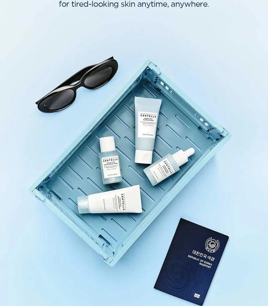 هل سئمت من جفاف بشرتك، تهيجها، أو بهتانها بمجرد أن تطأ قدماك وجهة سفر جديدة؟ لقد حان الوقت لتوديع هذه المشاكل إلى الأبد! نقدم لكم SKIN1004 - Madagascar Centella Hyalu-Cica Travel Kit، مجموعة العناية بالبشرة المثالية للسفر، المصممة خصيصاً لتمنح بشرتك الترطيب العميق والتهدئة الفعالة التي تستحقها، بغض النظر عن تغير البيئة.