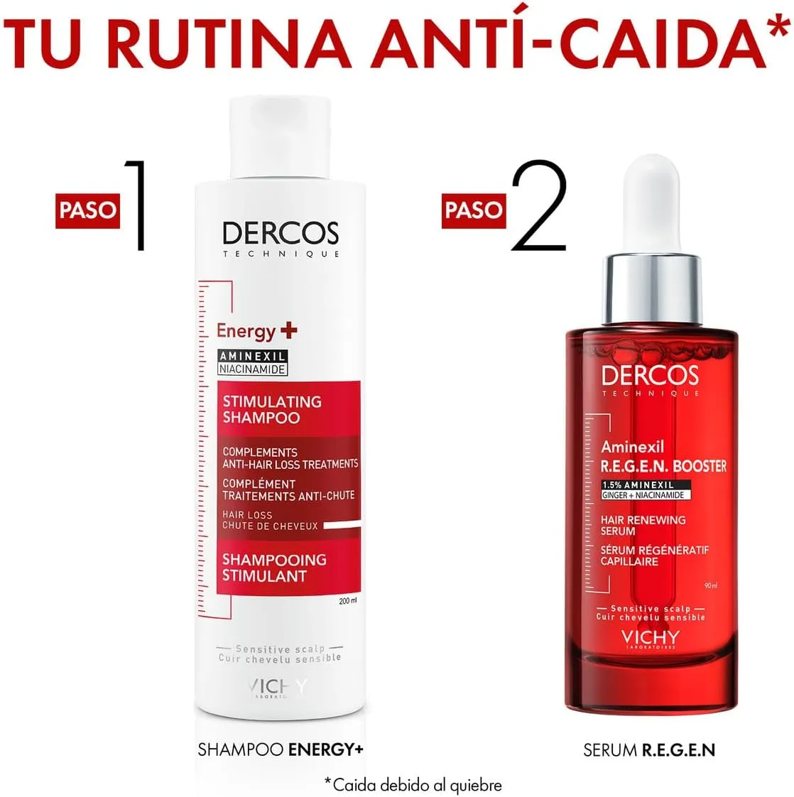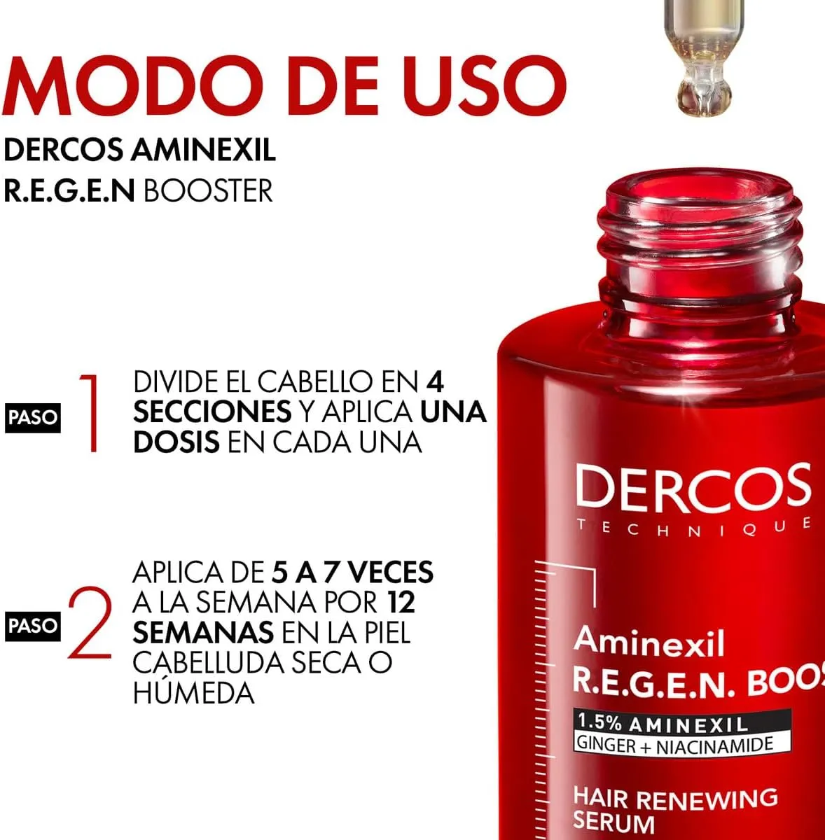 يعتمد سيروم Vichy Dercos Regen Booster على مزيج فريد من المكونات النشطة التي تعمل بتآزر لتقديم أفضل النتائج لتجديد وترطيب الشعر: