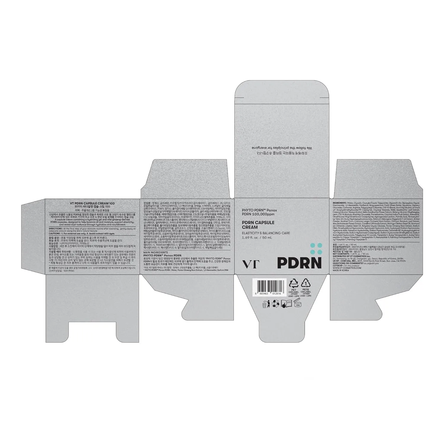 The magic of VT PDRN Capsule Cream lies in its meticulously selected blend of powerful ingredients:
