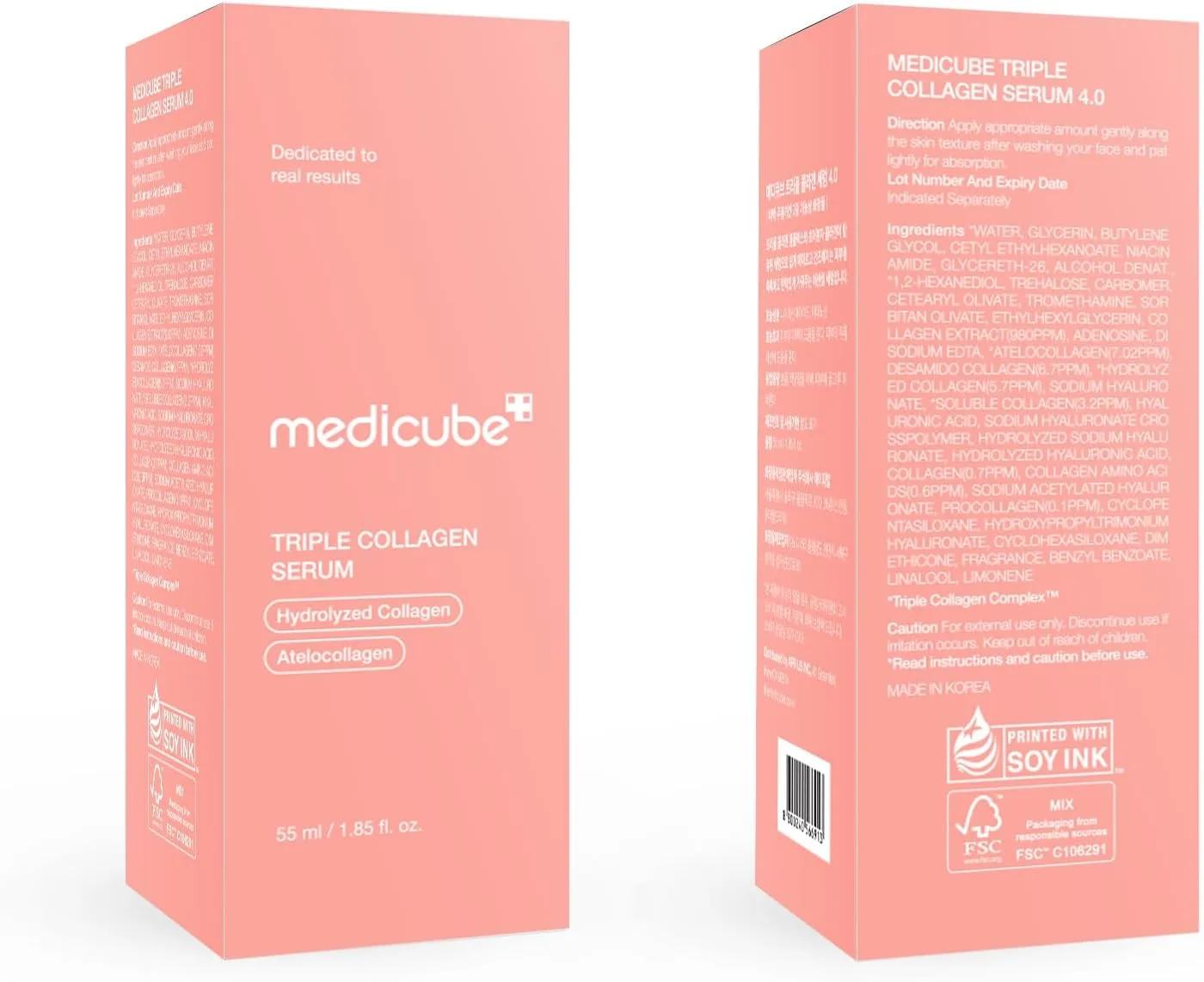 سيروم Medicube Triple Collagen يدعم مرونة البشرة، يقلل مظهر الخطوط الدقيقة ويمنح ترطيبًا عميقًا.